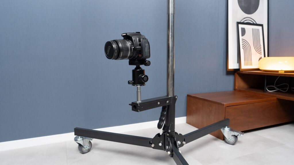 色々調べて見つけたのがSOONPHOのセンチュリースタンド。照明機材用のスタンドだがカメラを取り付けられるハンドルが付いている。見た目はドリーポッドと似ていて、しかも価格は約1万5千円とベルボンのドリーポッドの半額以下。